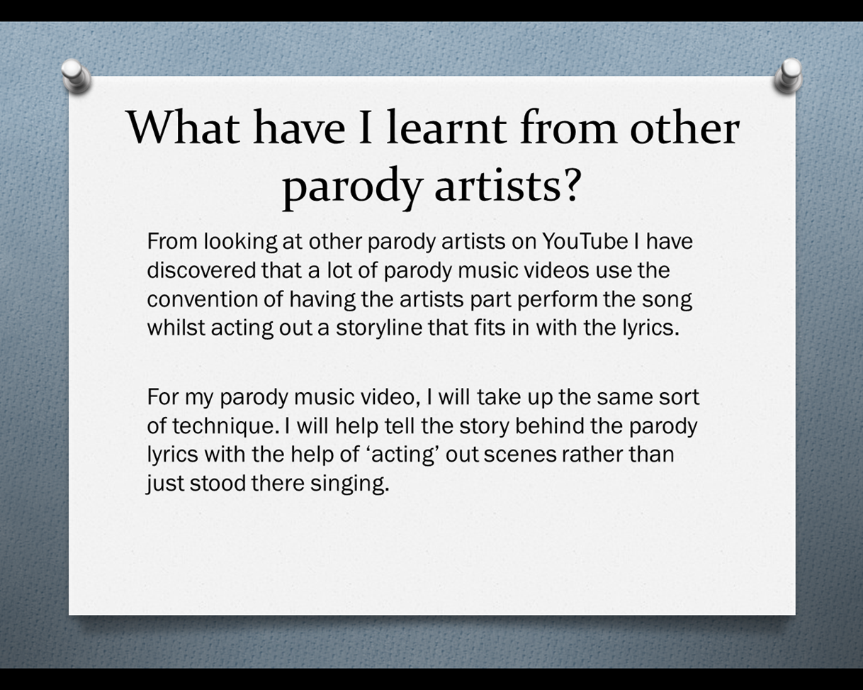 drawn to liking a parody song due to the amusing lyrics. This gave the urge to